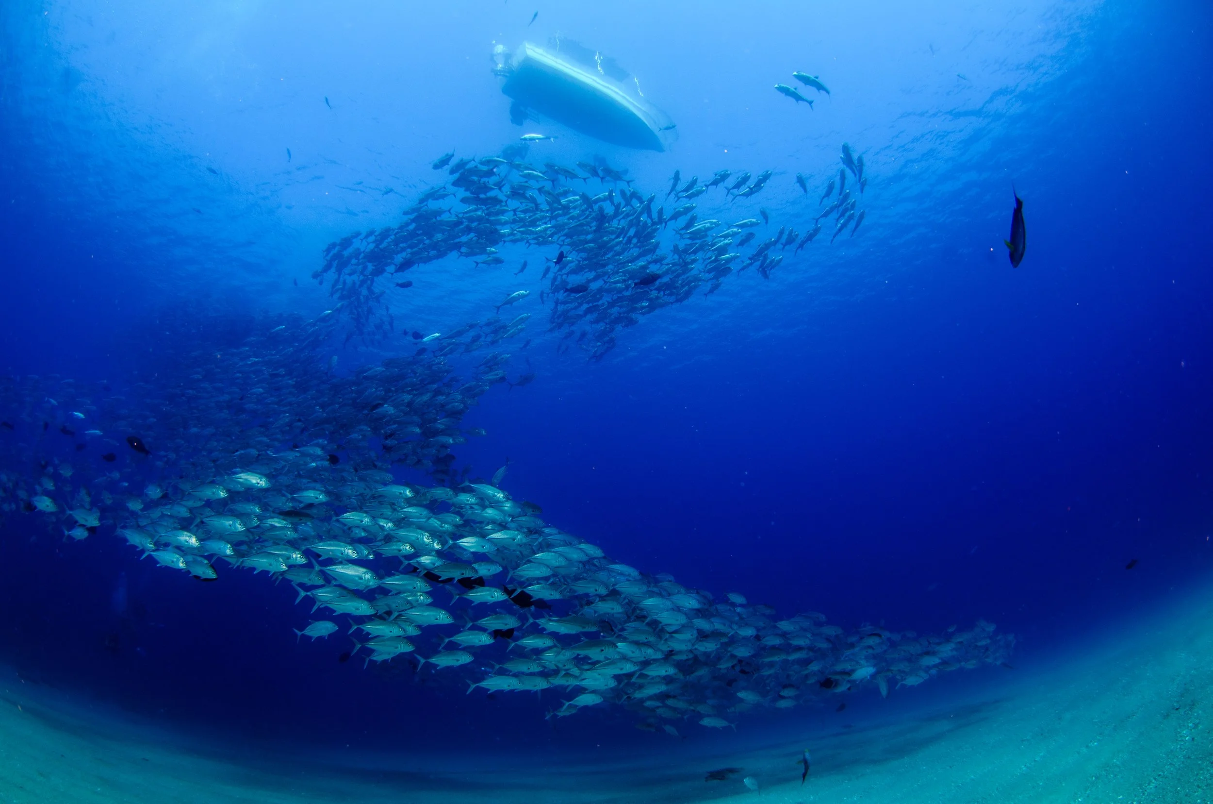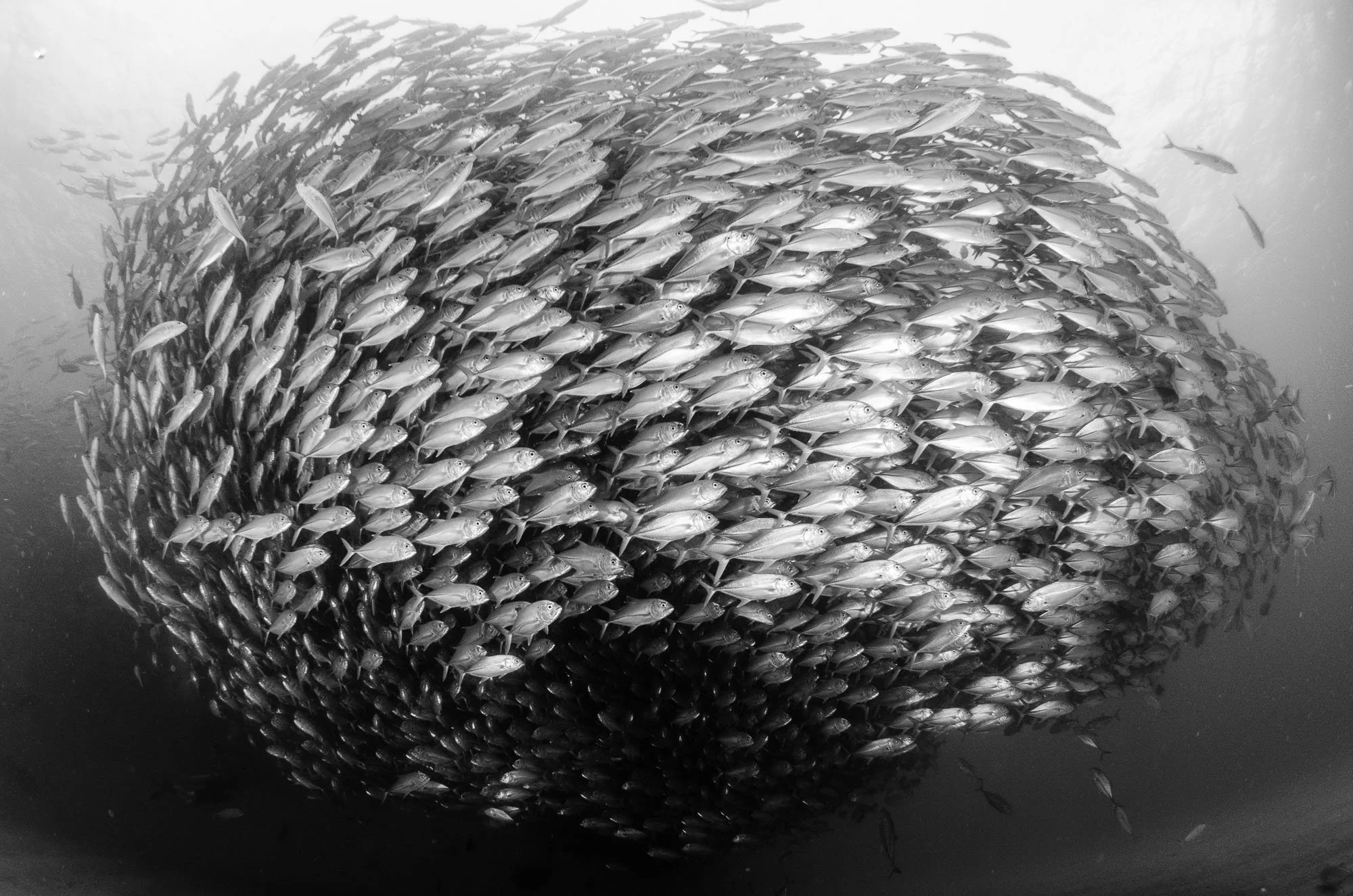Cardúmenes de jureles tan densos que bloquean la luz.