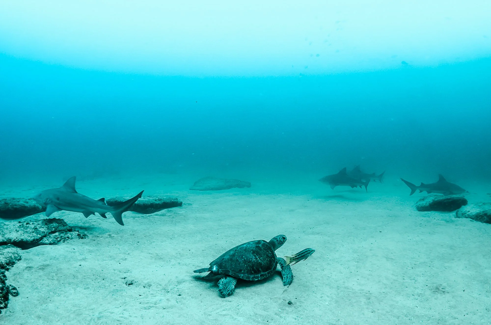 Y encuentros con tiburones que en otros lugares serían raros… aquí son comunes.